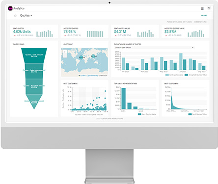 Lantek Customer Analyticsは、高度なアルゴリズムを使用して生産オーダーを分析し、再発パターンを特定し、顧客の購買を予測します。 Customer Analyticsは、リソースの予約、高度な販売予測、Lantek Advanced Planningを可能にします。